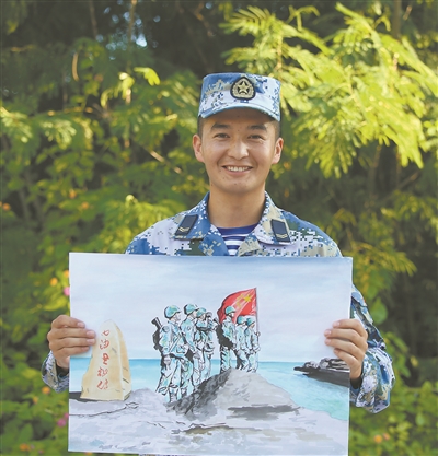 生長在新疆的我,從小就向往大海,夢想著成為一名海軍戰(zhàn)士。幸運(yùn)的是,2年前,這個夢想成真了。然而上島后,理想與現(xiàn)實(shí)的差距曾讓我一度感到迷茫。直到有一次與在島上待了10余年的軍醫(yī)聊天,我才改變了對守島的認(rèn)識,開始懂得了堅守的意義。也是從那時開始,我發(fā)揮特長,用畫筆記錄西沙的壯麗風(fēng)光、守島官兵的訓(xùn)練生活。