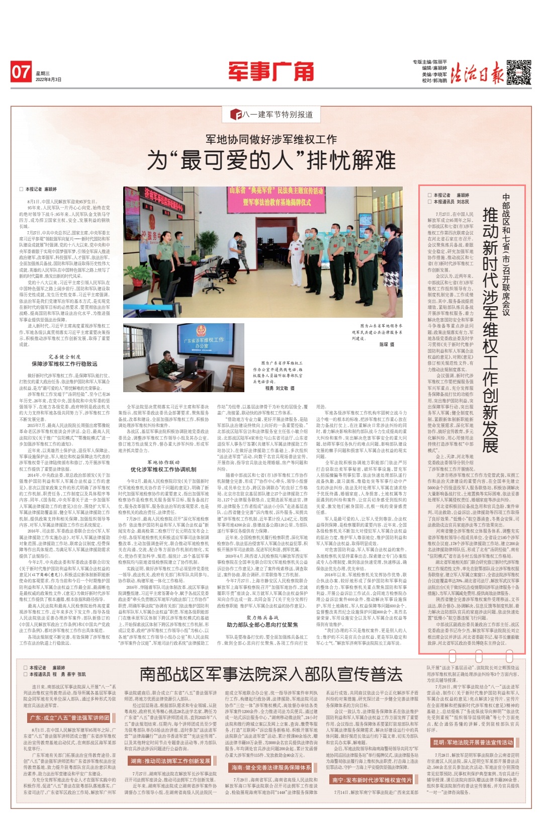 7月27日,在中國人民解放軍建軍95周年之際,中部戰(zhàn)區(qū)和七?。ㄊ校┥孳娋S權(quán)工作第四次聯(lián)席會(huì)議在河北省石家莊市召開。會(huì)議聚焦練兵備戰(zhàn),著眼安全穩(wěn)定,研究加強(qiáng)軍地協(xié)作措施,推動(dòng)戰(zhàn)區(qū)和七?。ㄊ校┬聲r(shí)代涉軍維權(quán)工作創(chuàng)新發(fā)展。