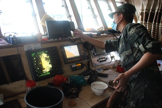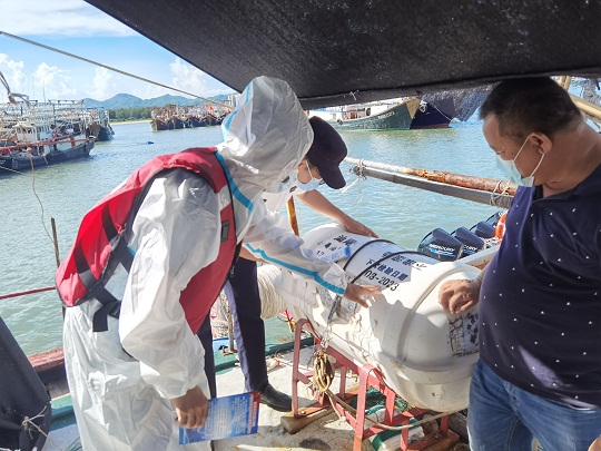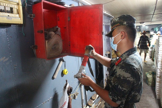 圖為檢查漁船防火設(shè)備。