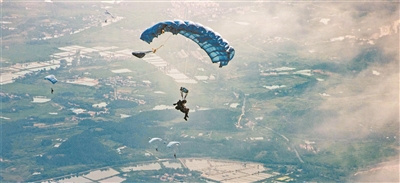 圖為特戰(zhàn)隊員利用翼傘進行武裝遠(yuǎn)程滲透。楊越旺 攝