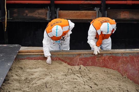 當日清晨,上海寶山海警局獲悉,有1艘涉嫌非法運砂的貨船進入管轄海域,該局立即派遣正在巡邏的執(zhí)法船前往核查。執(zhí)法船接到命令后迅速前往其途徑海域攔截,經(jīng)過核查比對,執(zhí)法艇在1小時內(nèi)迅速鎖定嫌疑船只。執(zhí)法人員登船后發(fā)現(xiàn),該船貨艙內(nèi)共裝有海砂1000余噸,且無法提供任何相關(guān)合法手續(xù),涉嫌非法運砂。目前,案件正在進一步偵辦中。