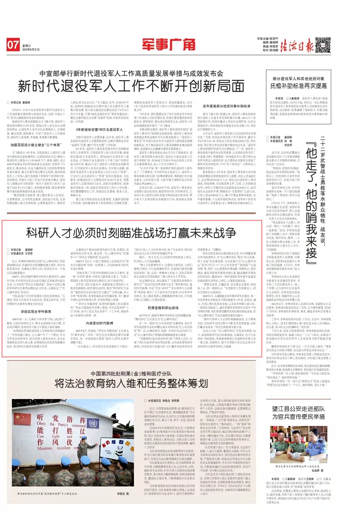 近年來,軍隊(duì)對(duì)高水平、高素質(zhì)復(fù)合型科研人才需求急劇增加。院黨委經(jīng)過研究,推出“科學(xué)研究方法談”“獻(xiàn)給研究生的12條忠告與建議”“文理交融,多元并舉”等指導(dǎo)性、科學(xué)性強(qiáng)的系列專題講座,專門邀請(qǐng)中國(guó)社會(huì)科學(xué)院周立偉、何祚庥等院士授課。