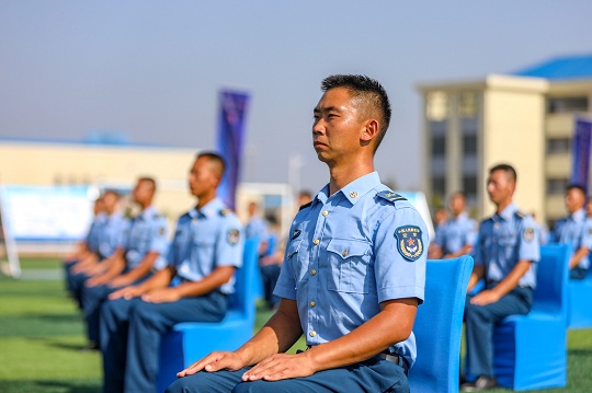 圖為軍營網(wǎng)絡(luò)安全宣傳周活動啟動儀式現(xiàn)場,官兵端坐靜聽。
