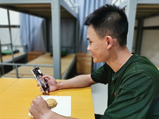 一封家書,一通電話,一個視頻,跨越了千山萬水,將祝福送給遠方的親人。在中秋節(jié)到來前夕,平時忙于各種各樣工作任務的執(zhí)法員們不約而同地執(zhí)筆成信,拿起手機和家人打電話聊視頻,送上屬于自己的節(jié)日問候和祝福。“媽媽,你看,這是我自己動手做的月餅,我已經(jīng)寄了兩盒回來,到時候你和爸爸嘗嘗,媽媽,中秋節(jié)我不在你們身邊,你和爸爸要照顧好身體?!痹摼肿钅贻p的00后執(zhí)法員鄭浩林,以這樣的方式向家里的父母送上節(jié)日問候。