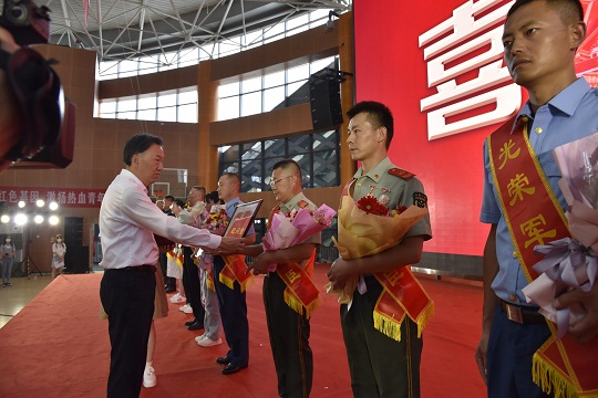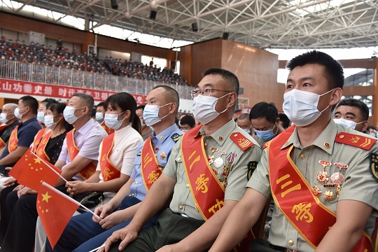 圖為立功現(xiàn)役軍人和軍屬代表。