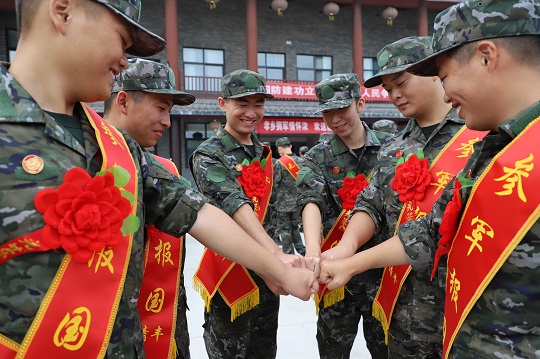 120余名穿著新式星空迷彩服、身披綬帶、胸帶紅花和標(biāo)識(shí)的有志青年,精神抖擻,斗志昂揚(yáng)。他們紛紛表示:堅(jiān)決聽(tīng)從黨的召喚,一定牢記重托,刻苦訓(xùn)練,努力學(xué)習(xí),提升本領(lǐng),盡快成長(zhǎng)為一名合格軍人,為家鄉(xiāng)增光添彩,為國(guó)防事業(yè)貢獻(xiàn)力量。