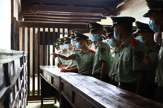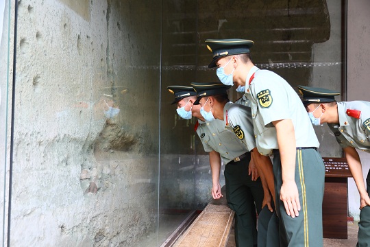 圖為武警井岡山中隊新兵在井岡山大井毛澤東舊居了解革命舊址情況。