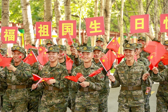 國慶前夕,武警青??傟犻_展“向祖國深情告白”主題活動,官兵們通過與國旗合影、組織升旗儀式等形式,向偉大祖國深情告白,祝福偉大祖國繁榮昌盛。圖為官兵揮舞國旗喜迎國慶。