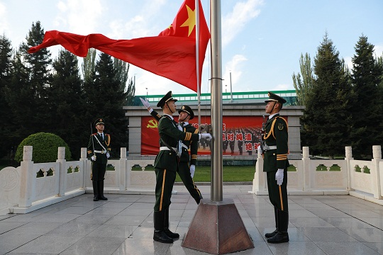 在玉樹高原,升旗儀式結(jié)束后,官兵意猶未盡,積極開展“向祖國深情告白”主題活動,大家臉上貼著、手中揮舞著小國旗,與國旗合影,互相表達對祖國的熱愛,現(xiàn)場氣氛熱烈。大家紛紛表示:祖國的強大、人民的幸福、社會的穩(wěn)定,是武警官兵矢志不渝的崇高追求。我們一定時刻牢記使命,忠實履行職責,以更高的工作標準、更昂揚的精神狀態(tài)、更扎實的工作作風,有力維護玉樹地區(qū)社會大局穩(wěn)定,永遠做黨和人民的忠誠衛(wèi)士。