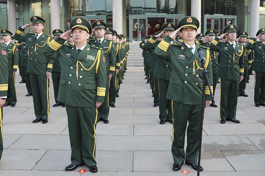 “同志們,黨在號召、祖國在呼喚、人民在期待,時代催人奮進,我們要堅定愛黨的信念、強化愛國的情懷、盡好衛(wèi)國的責任、扛起強國的擔當,為黨的事業(yè)、為國家富強作出軍人應(yīng)有的貢獻!”升旗儀式后,總隊少將政治委員楊志強發(fā)表了熱情洋溢的致辭。