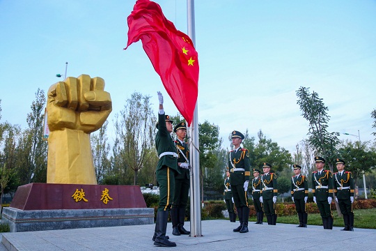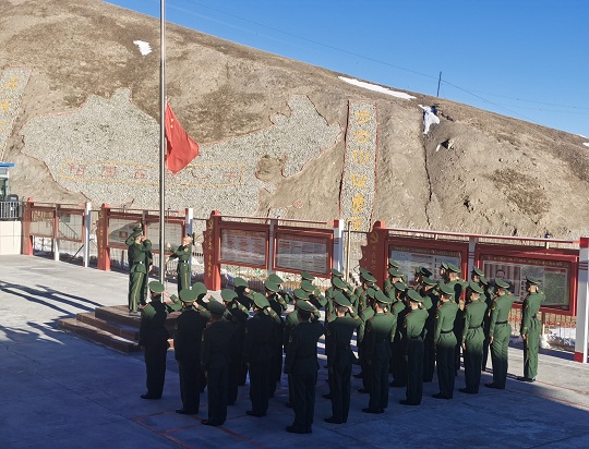 升旗是一項神圣的儀式,更是對靈魂的一次洗禮。當天,該總隊各基層部隊也紛紛舉行了升旗儀式,為祖國慶生。在海拔4800多米的昆侖山,擔負青藏鐵路昆侖山隧道守護任務(wù)的官兵升起國旗。這里高寒缺氧、風雪彌漫,條件極為艱苦,但官兵高喊“寧可生命透支,不讓使命欠賬”的口號,扎根高原、無悔奉獻。升旗儀式結(jié)束后,戰(zhàn)士羅昌強深情地說:“感覺所有堅守和辛苦,就為了這一面‘中國紅’!”
