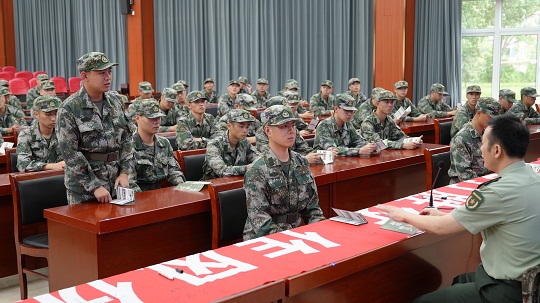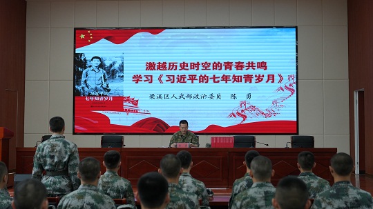 圖為梁溪區(qū)人武部政委陳勇進行役前教育授課。