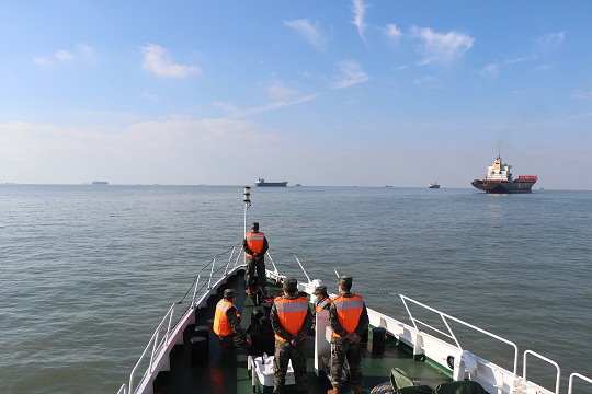 為進(jìn)一步提升巡邏管控質(zhì)效,維護(hù)轄區(qū)海域安全穩(wěn)定,山東威海海警局聯(lián)合海岸警察、漁政、海事等多家涉海職能單位,開展海上聯(lián)合巡航,對海上治安、海洋生態(tài)環(huán)境保護(hù)、海上重點目標(biāo)設(shè)施守護(hù)、漁船管控及嚴(yán)防疫情海上輸入等方面進(jìn)行重點檢查,以《中華人民共和國海警法》為重點,對涉海人員開展普法教育,同時對漁船民進(jìn)行安全生產(chǎn)注意事項、疫情防控宣傳教育。涉海部門發(fā)揮各自職能優(yōu)勢,形成有效聯(lián)動,起到良好成效,得到了轄區(qū)涉海企業(yè)和人員的廣泛認(rèn)可。