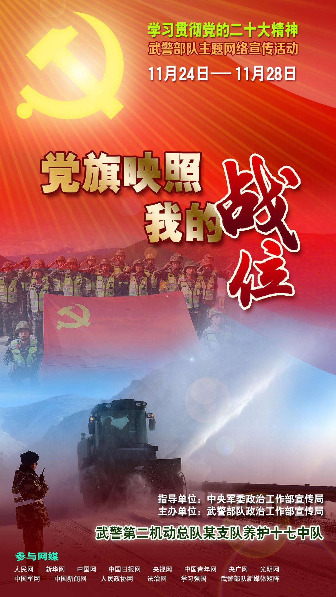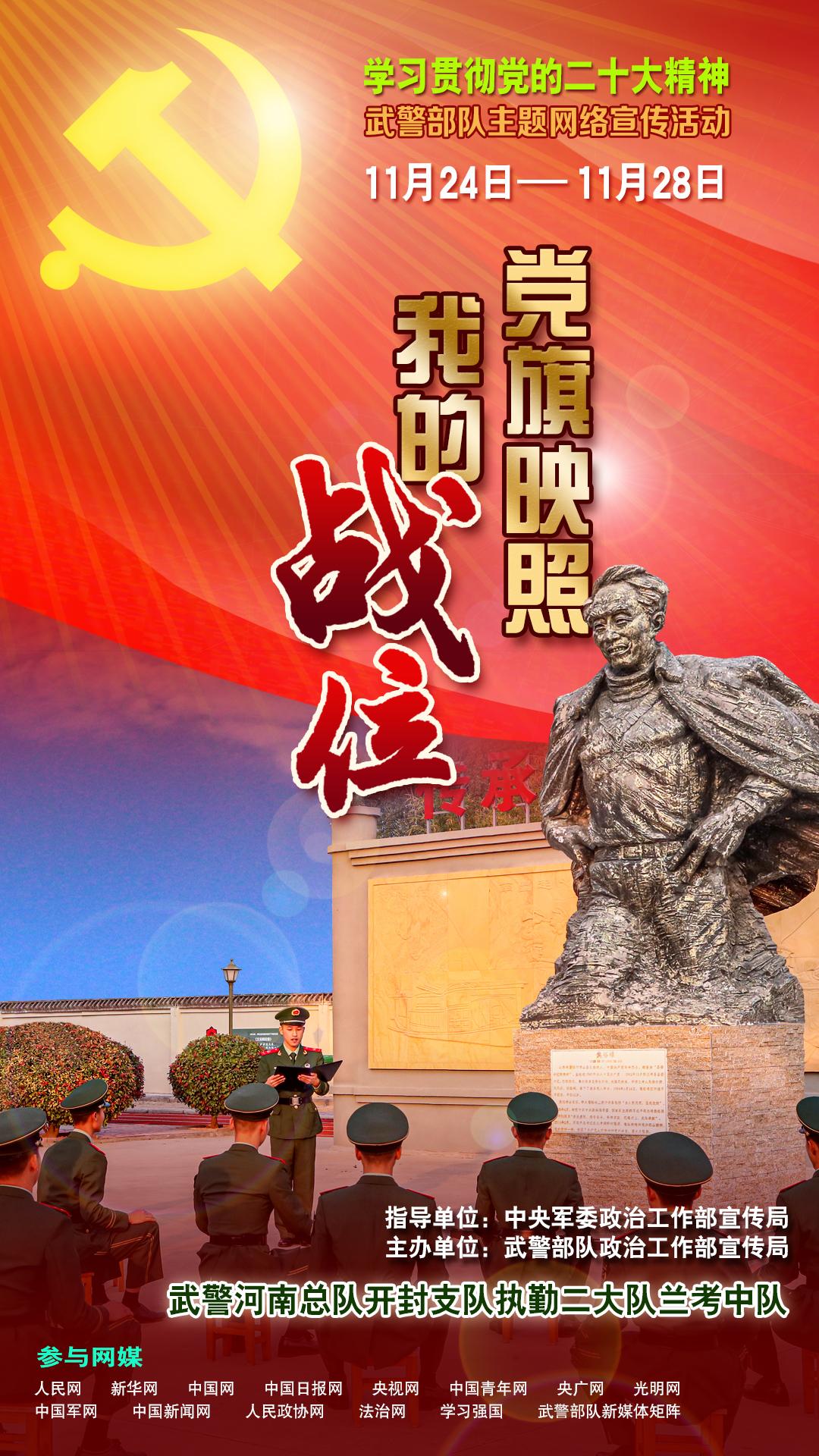 本報(bào)訊 記者廉穎婷 黨的二十大召開以來,從南國小島到北國邊疆,從茫茫草原到雪域高原,從繁華都市到偏遠(yuǎn)山村,駐守祖國各地的武警官兵正以最大的政治熱情和政治自覺,投入到深入學(xué)習(xí)貫徹黨的二十大精神中來。為充分展現(xiàn)學(xué)習(xí)貫徹的火熱場景和生動實(shí)踐,著力反映忠誠維護(hù)核心、矢志奮斗強(qiáng)軍的堅(jiān)定意志和嶄新風(fēng)貌,近期武警部隊(duì)策劃組織了“黨旗映照我的戰(zhàn)位”主題網(wǎng)絡(luò)宣傳活動,邀請多家主流網(wǎng)絡(luò)媒體,對武警北京總隊(duì)執(zhí)勤第七支隊(duì)禮賓大隊(duì)國賓護(hù)衛(wèi)中隊(duì)、武警山東總隊(duì)臨沂支隊(duì)執(zhí)勤一大隊(duì)機(jī)動中隊(duì)、武警河南總隊(duì)開封支隊(duì)執(zhí)勤二大隊(duì)蘭考中隊(duì)和武警第二機(jī)動總隊(duì)某支隊(duì)養(yǎng)護(hù)十七中隊(duì)4個(gè)先進(jìn)基層單位進(jìn)行采訪報(bào)道。