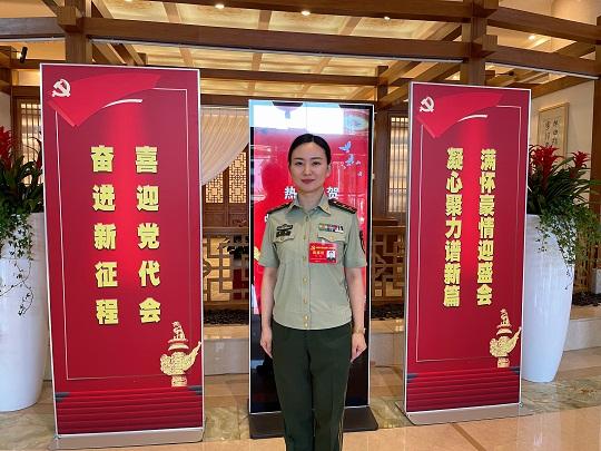 圖為武警湖北總隊醫(yī)院外一科護士長吉利參加湖北省黨代會。寧佳 攝