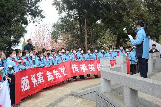 圖為3月31日,南京上元中學(xué)學(xué)生徒步近3公里祭掃鄧仲銘烈士碑。陳遠(yuǎn)根 攝