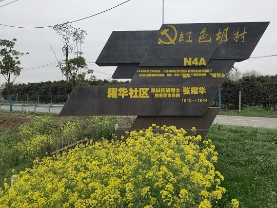 南京市江寧區(qū)是抗戰(zhàn)時(shí)期革命老區(qū)之一,在湯銅大道后湖村口,有座鋼鐵雕塑格外引人注目,上面寫著:“紅色湖村——1949年江寧解放后,人民政府在烈士戰(zhàn)斗和犧牲的地方設(shè)置了‘耀華鄉(xiāng)’,無論社區(qū)建制如何調(diào)整,英雄的名字‘耀華’都緊緊相連,耀華社區(qū)是以抗戰(zhàn)烈士張耀華的名字命名?!?/p>