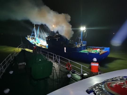 3月8日23時(shí)30分,河北滄州海警局接到報(bào)警,某漁業(yè)船舶于黃驊港海域遇大風(fēng)浪,船體破損、失去動(dòng)力。滄州海警局立即派出執(zhí)法艇前去救援。受冷空氣影響,當(dāng)?shù)仫L(fēng)力達(dá)6級(jí),涌浪高達(dá)2米。由于事發(fā)海域位于近海淺灘,漁船在風(fēng)流影響下極易擱淺,救援工作面臨巨大困難。