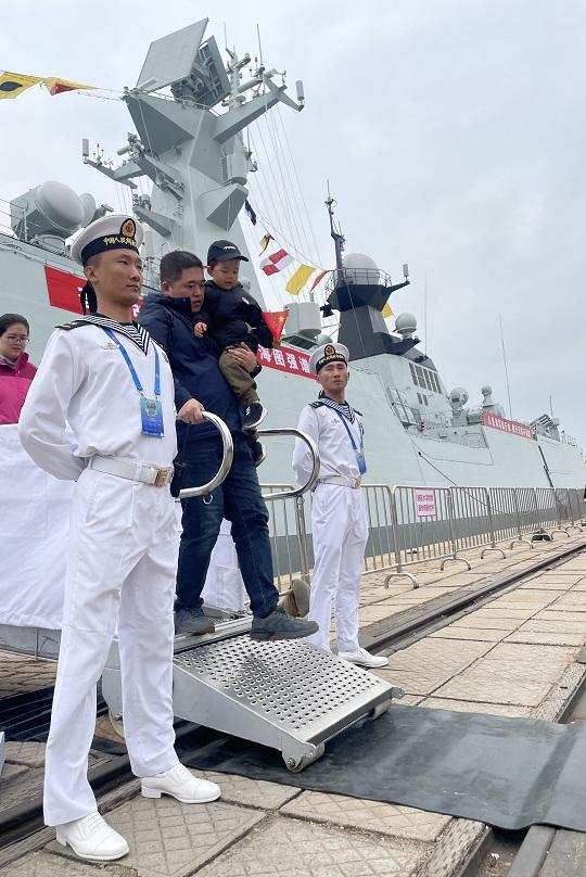 圖為4月22日參觀青島港3號(hào)碼頭艦艇開(kāi)放活動(dòng)的市民。本報(bào)記者 廉穎婷 攝
