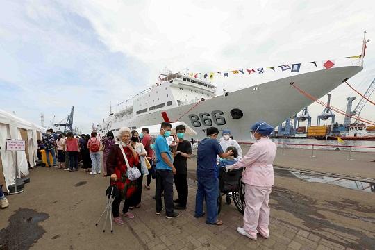 圖為2022年11月11日,“和諧使命—2022”任務(wù)醫(yī)療服務(wù)在印尼雅加達(dá)丹戎不碌港碼頭和“和平方舟”號(hào)醫(yī)院船上同時(shí)如期展開(kāi)。蒲海洋 攝