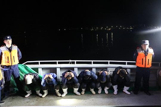 行動期間,各單位重點加強渤海口蝦蛄專項捕撈海域、中朝間海域、涉朝韓敏感水域、中韓暫定措施水域等重點方向監(jiān)管,集中打擊擅自變更作業(yè)場所捕撈漁船、涉漁“三無”船舶、非法入韓作業(yè)漁船,綜合運用“科技管?!眻?zhí)法模式開展掃海行動,海警直升機同步開展空中巡查,艦機協(xié)同海空一體執(zhí)法,見警率、登檢率、查處率顯著提高。同時,各級海警機構強化與漁政、公安、市場監(jiān)管等部門配合協(xié)作,健全完善信息通報、工作會商、聯(lián)合辦案等工作機制,形成全鏈條打擊、海陸聯(lián)動、一體執(zhí)勤新格局。