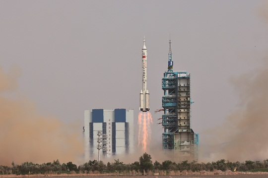 圖為5月30日,搭載神舟十六號(hào)載人飛船的長(zhǎng)征二號(hào)F遙十六運(yùn)載火箭在酒泉衛(wèi)星發(fā)射中心點(diǎn)火發(fā)射。新華社記者 李剛 攝