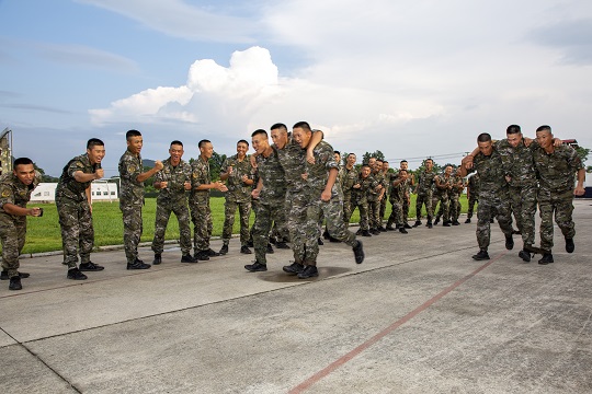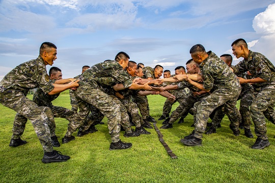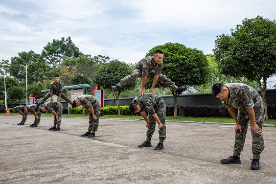 圖為武警官兵開(kāi)展“跳山羊”活動(dòng)。