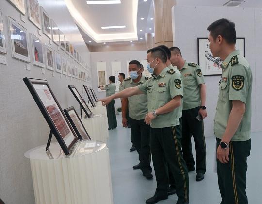 圖為舉辦“團(tuán)結(jié)奮斗譜新篇”主題書畫攝影展。武警海警學(xué)院供圖