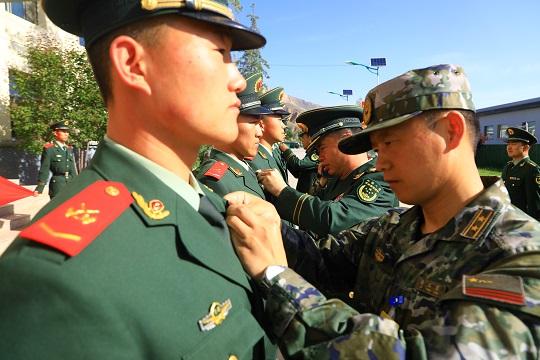 圖為武警青??傟?duì)黨員干部為新黨員佩戴黨徽。李懿軒 攝