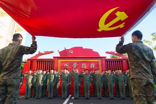 圖為南部戰(zhàn)區(qū)海軍航空兵某部組織官兵重溫入黨誓詞。張英鍇 攝