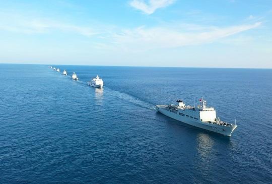 圖為南部戰(zhàn)區(qū)海軍某部組織編隊航行訓練。武歡慶 攝