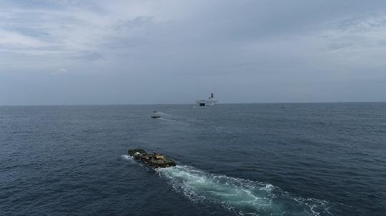 圖為粵東某海域,第74集團軍某旅與海軍某部聯(lián)合組織浮渡裝卸載訓練。顏新建 攝
