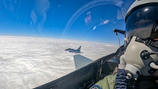 圖為南部戰(zhàn)區(qū)空軍某部長僚機前往預定空域,即將展開空戰(zhàn)對抗。王國云 攝
