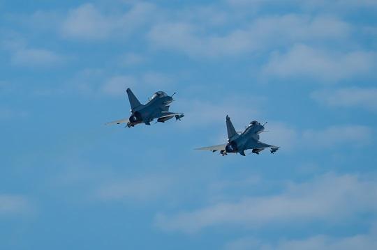 圖為南部戰(zhàn)區(qū)空軍某部戰(zhàn)機奔赴預定空域。侯凱文 攝