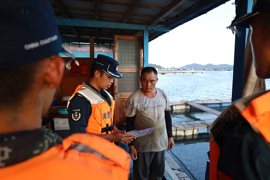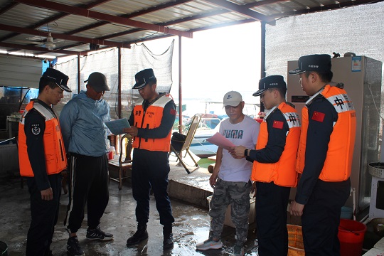 在做好海警營區(qū)和執(zhí)法艦艇防臺工作的基礎(chǔ)上,該局執(zhí)法員深入轄區(qū)碼頭開展安全檢查,幫助漁船民對漁排、船只加固纜繩、整理網(wǎng)具,檢查防臺防汛措施,消除各類安全隱患。巡邏艇同步出海巡查,通過廣播喊話、發(fā)放宣傳冊等方式進行防臺宣傳,緊急勸返轄區(qū)漁民群眾撤離到陸地。