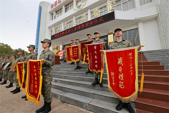 圖為“模范空降兵連”組織入家譜暨授槍儀式。王寶強(qiáng) 攝
