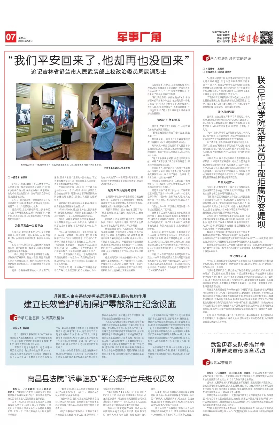 “我與周政委第一次接觸是去年9月,參加部里專(zhuān)武干部集中辦公會(huì)。他給我的第一印象是軍味十足,話不多但樸實(shí)無(wú)華,特別接地氣。聲音不高,但字字鏗鏘有力,思維清晰敏捷,沒(méi)一句空話套話?!笔嫣m市北城街道人民武裝部部長(zhǎng)白麗麗說(shuō)。
