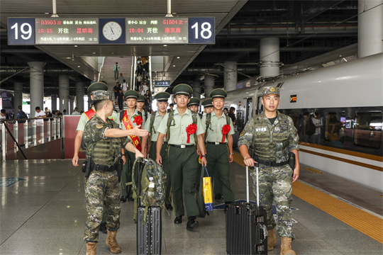 圖為退役士兵有序返鄉(xiāng)。盧泳鋼 攝