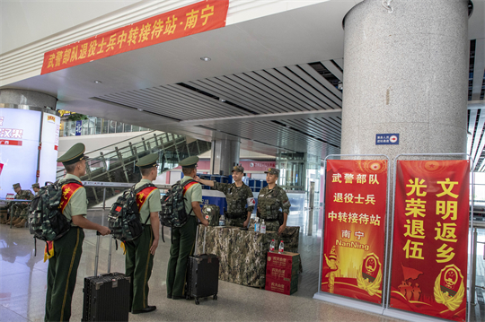 9月1日,武警廣西總隊(duì)南寧支隊(duì)熱烈歡送2023年度夏秋季退役士兵光榮返鄉(xiāng),通過(guò)組織歡送儀式、設(shè)立中轉(zhuǎn)接待站等方式,確保退役士兵返鄉(xiāng)安心、暖心。退役士兵戀戀不舍地離開(kāi)他們揮灑汗水、奉獻(xiàn)青春的熱土,踏上返鄉(xiāng)征程。
