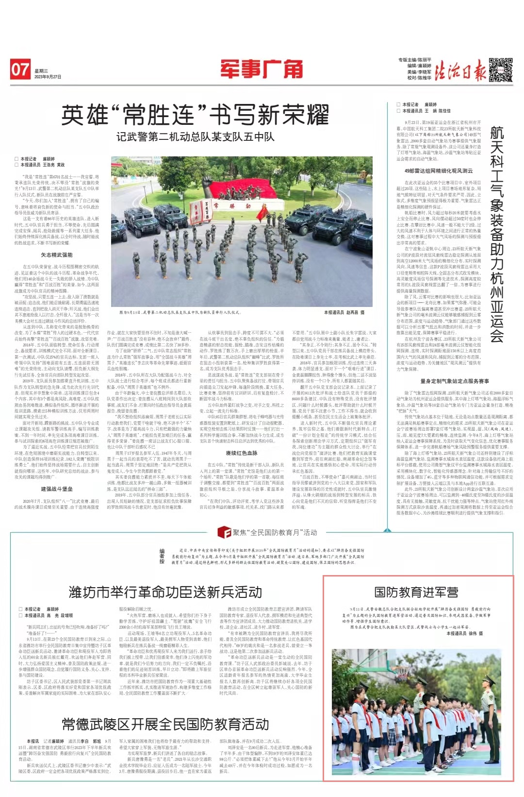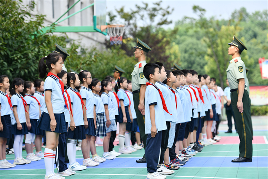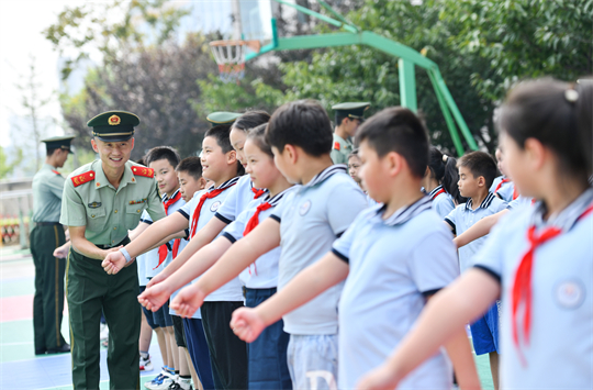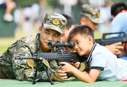 9月11日,武警安徽總隊(duì)合肥支隊(duì)聯(lián)合駐地學(xué)校開展“踔厲奮發(fā)強(qiáng)國防 勇毅前行向復(fù)興”為主題的全民國防教育進(jìn)軍營活動(dòng),通過普及國防知識、參觀武器裝備、學(xué)做軍事動(dòng)作等,增強(qiáng)學(xué)生國防意識。