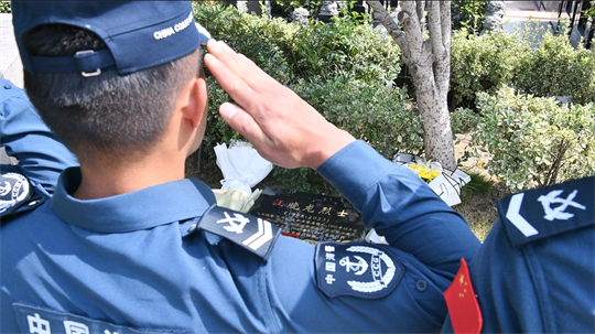 圖為海警執(zhí)法員在阜陽太和縣烈士紀(jì)念館。