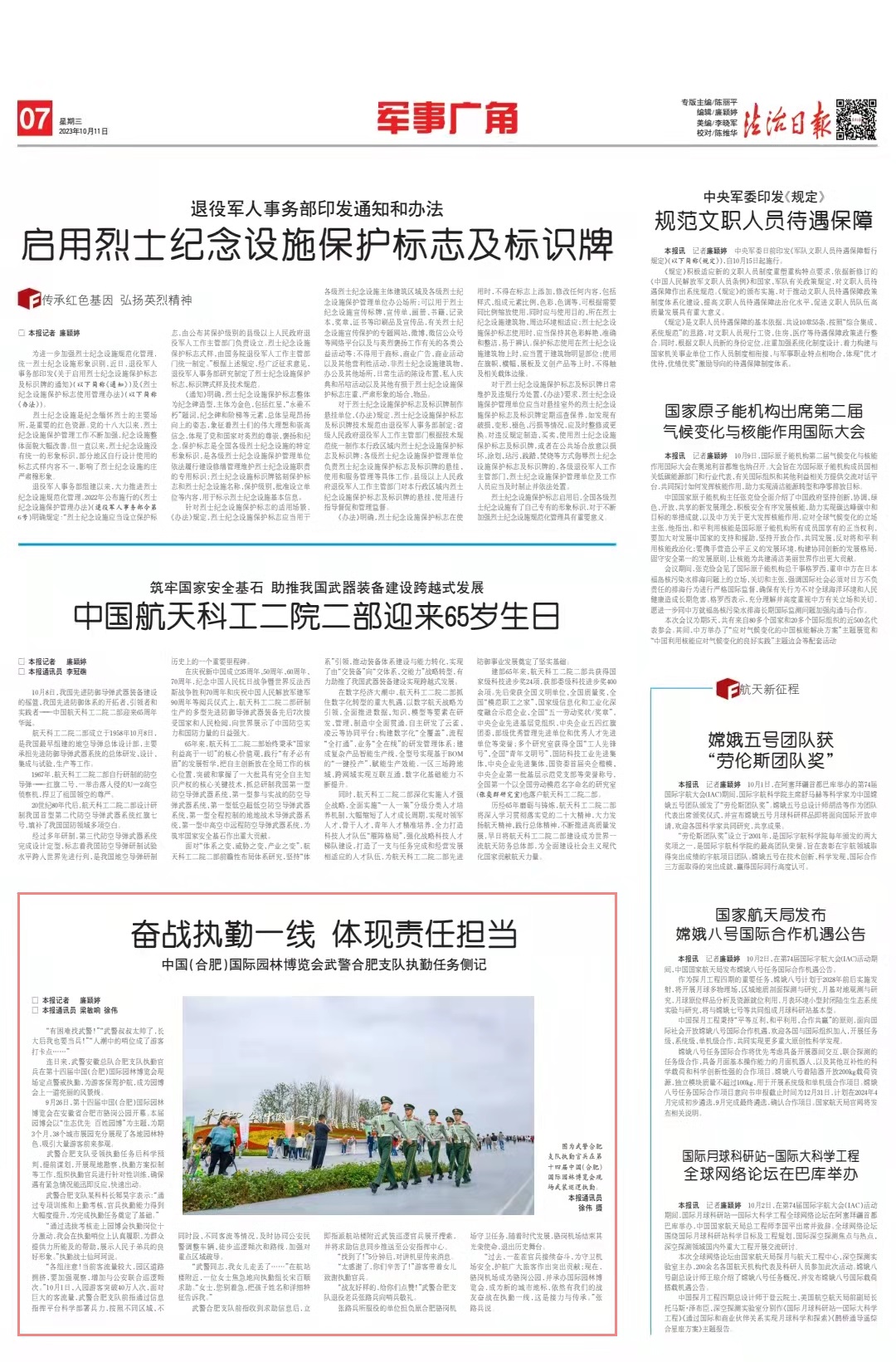 連日來,武警安徽總隊合肥支隊執(zhí)勤官兵在第十四屆中國(合肥)國際園林博覽會現(xiàn)場定點警戒執(zhí)勤,為游客保駕護航,成為園博會上一道亮麗的風景線。