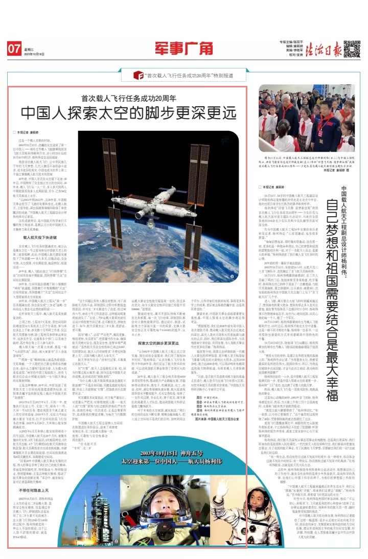 “從2003年到2023年,這20年里,中國航天事業(yè)經(jīng)歷了飛速的發(fā)展和變化,在載人航天、衛(wèi)星導(dǎo)航、深空探測等領(lǐng)域均取得了舉世矚目的成就?!敝袊d人航天工程副總設(shè)計(jì)師楊利偉對記者說。