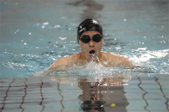 哨聲一響,泳池里激起無數(shù)浪花,選手們個(gè)個(gè)宛如蛟龍出海。他們劈波斬浪,你追我趕,在偌大的游泳池中盡顯身手。