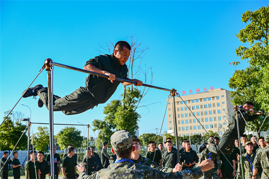 投擲場(chǎng)上,參賽隊(duì)員將體能與技能完美結(jié)合,演繹著不一樣的“速度與激情”。30X2蛇形跑賽場(chǎng)上,他們重心壓低,一路漂移。五公里武裝越野、運(yùn)送彈藥箱、防暴彈投擲……這些火藥味兒十足的項(xiàng)目營造出精武強(qiáng)能的氛圍,讓參賽隊(duì)員在賽場(chǎng)上淬煉勇于爭(zhēng)先的品行意志,錘煉過硬戰(zhàn)斗本領(lǐng)。他們把體育精神融入戰(zhàn)斗精神,在賽場(chǎng)上揮灑汗水,在比拼中錘煉血性,讓青春活力和激情熱血在賽場(chǎng)上同頻共振。