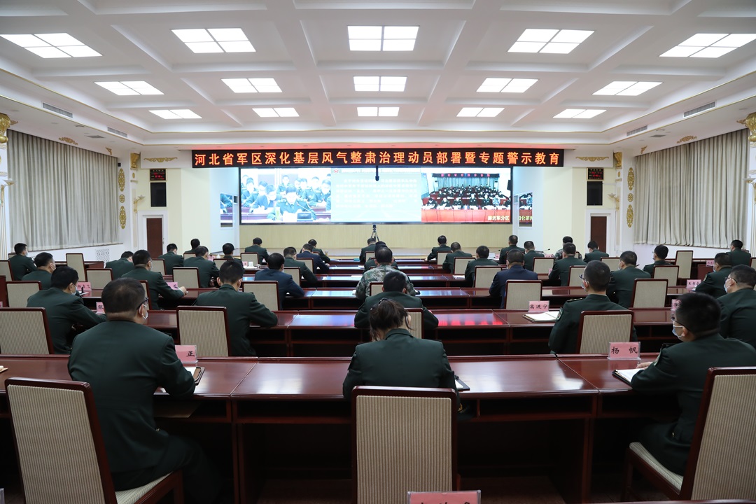 圖為河北省軍區(qū)深化基層風氣整肅治理動員部署暨專題教育。