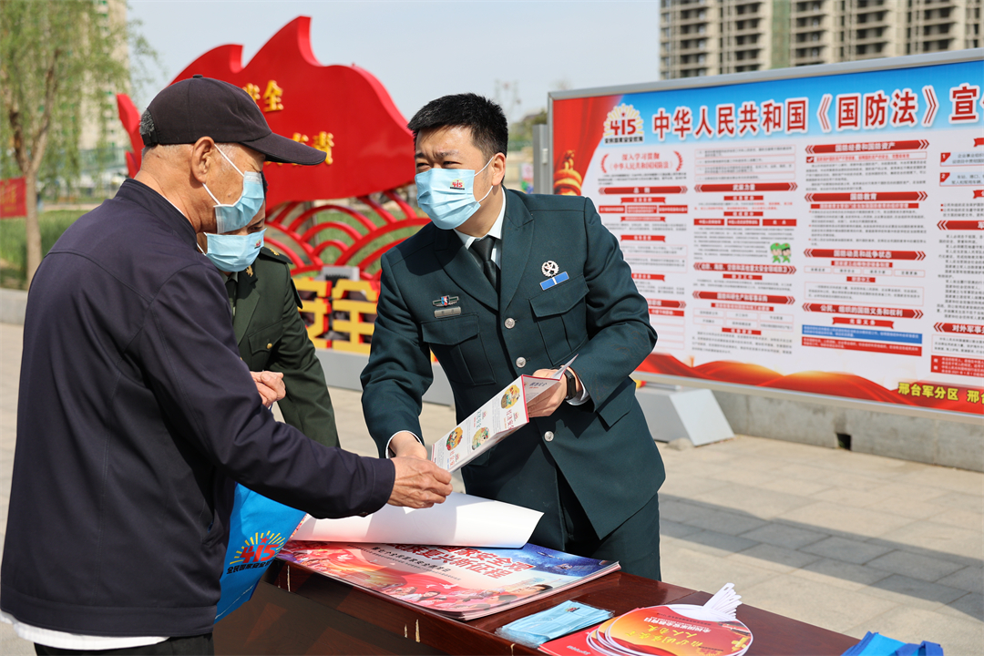 圖為邢臺軍分區(qū)結(jié)合全民國家安全教育日開展宣傳活動。張明 攝