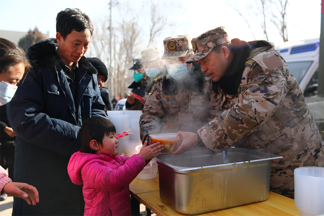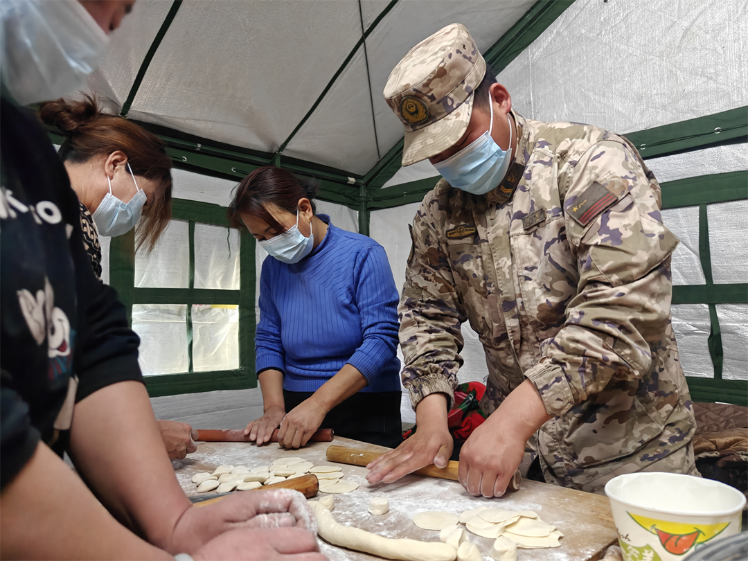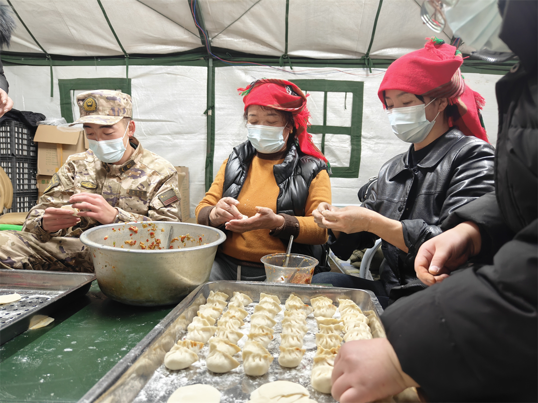 12月22日是冬至,武警青??傟牬妒聠T們和海東市民和縣中川鄉(xiāng)老鄉(xiāng)一起包餃子。大家一邊包餃子一邊聊天,有說有笑,現(xiàn)場充滿溫情。
