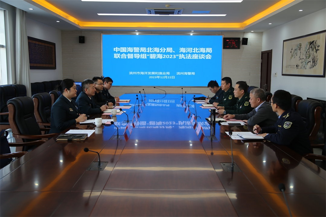 圖為聯(lián)合督導(dǎo)組與山東省海洋與漁業(yè)執(zhí)法監(jiān)察局座談交流。