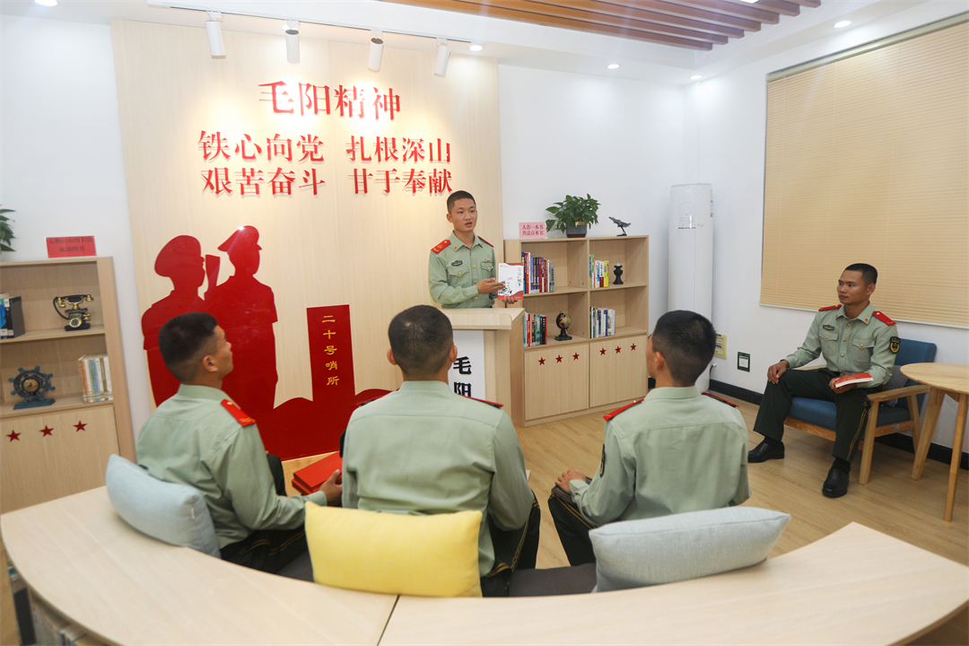 執(zhí)勤六中隊(duì)現(xiàn)任指導(dǎo)員金生清楚記得,今年3月到中隊(duì)任職時(shí)參加黨支部會(huì)議的場(chǎng)景。支部成員沒(méi)進(jìn)會(huì)議室,而是來(lái)到五指山革命根據(jù)地紀(jì)念園?!叭温毟刹恐挥蓄I(lǐng)會(huì)艱苦奮斗、自立自強(qiáng)、不屈不撓的瓊崖精神內(nèi)涵,才能在工作中捋清思路、抓準(zhǔn)重點(diǎn)……”時(shí)任指導(dǎo)員楊興科說(shuō)。